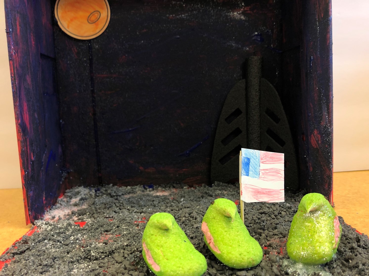 Astropeeps Bunny Aldrin and Neil Peepstrong explore Tranquilipeep Base — making history as the first sentient marshmallows to step on the moon. Marshmallow Collins drew the short straw and is orbiting up high in the Columbia capsule.