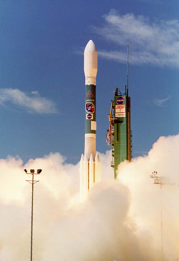 The launch of Landsat 7 was the second image ever posted on NASA Earth Observatory.