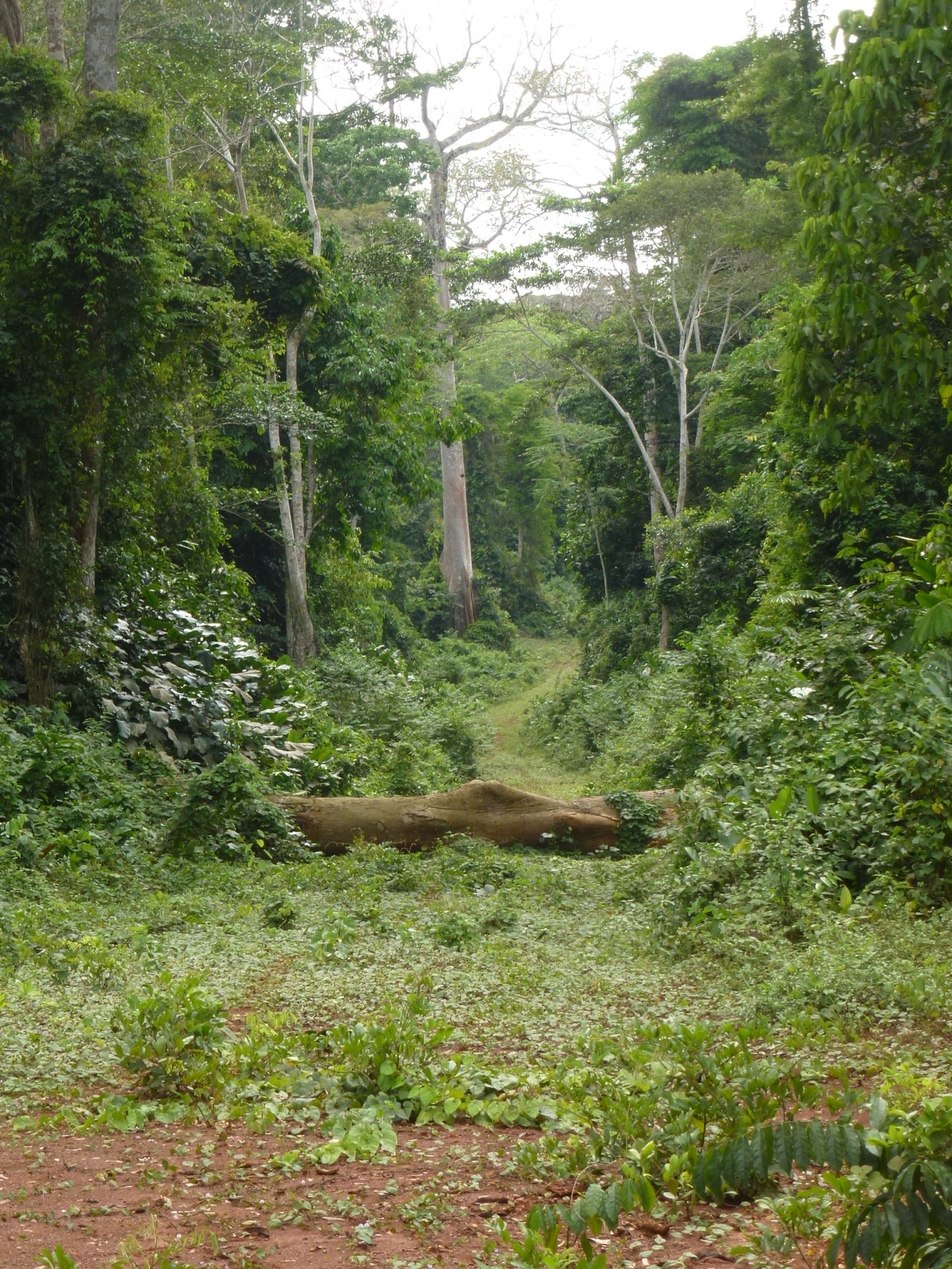 Abandoned roads were most commonly found inside logging concession areas. After a logging company was no longer using the road, the road was often closed or abandoned. Sometimes the road can be closed off by simply using a log to prevent vehicles from entering, as shown below.