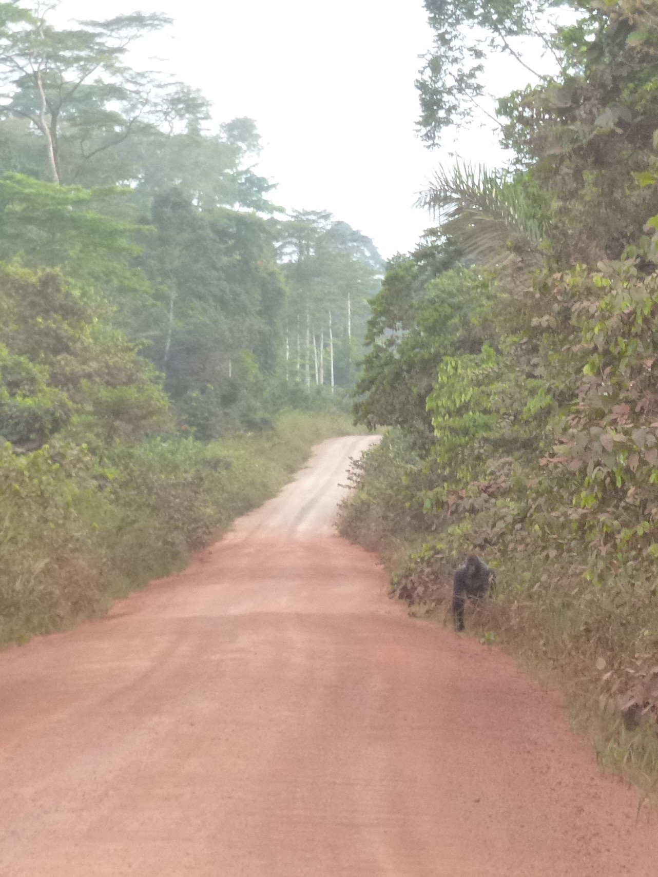 Researchers showed deforestation rates were the lowest around abandoned or closed roads. Abandoned roads reduce human traffic and allow vegetation to grow over the dirt path. The image below shows an abandoned road in the Republic of Congo that is overgrown with regenerating trees and plants. These plant species pictured are popular for gorillas to feed on and can help restore the gorillas’ natural habitat.