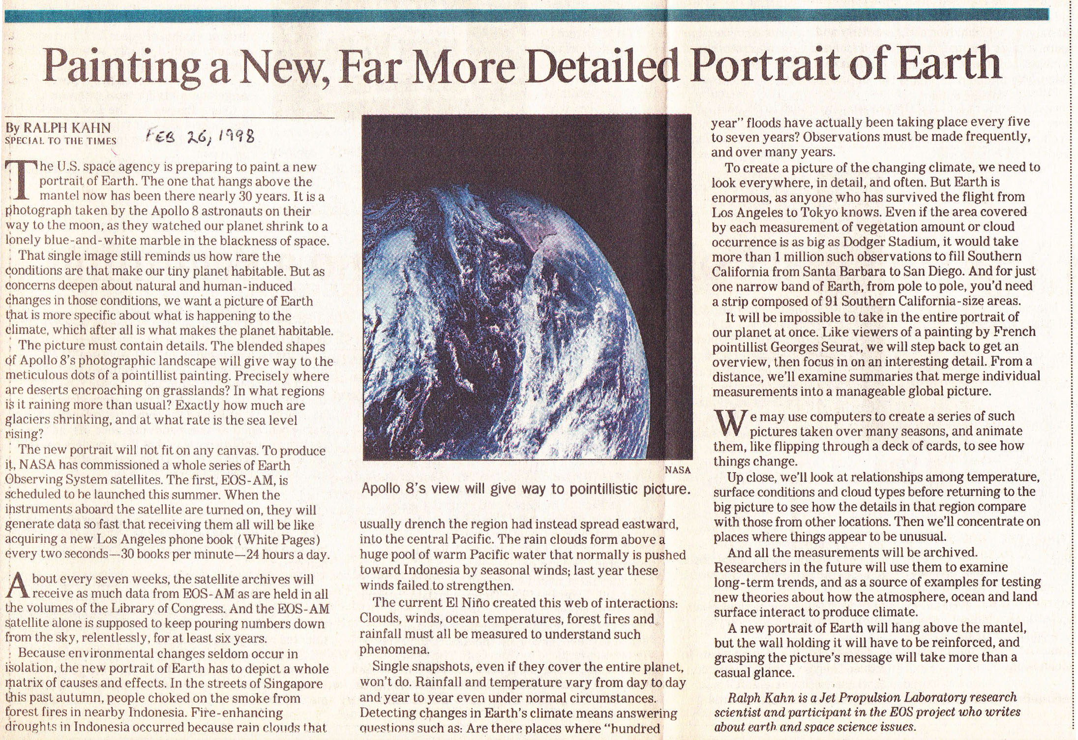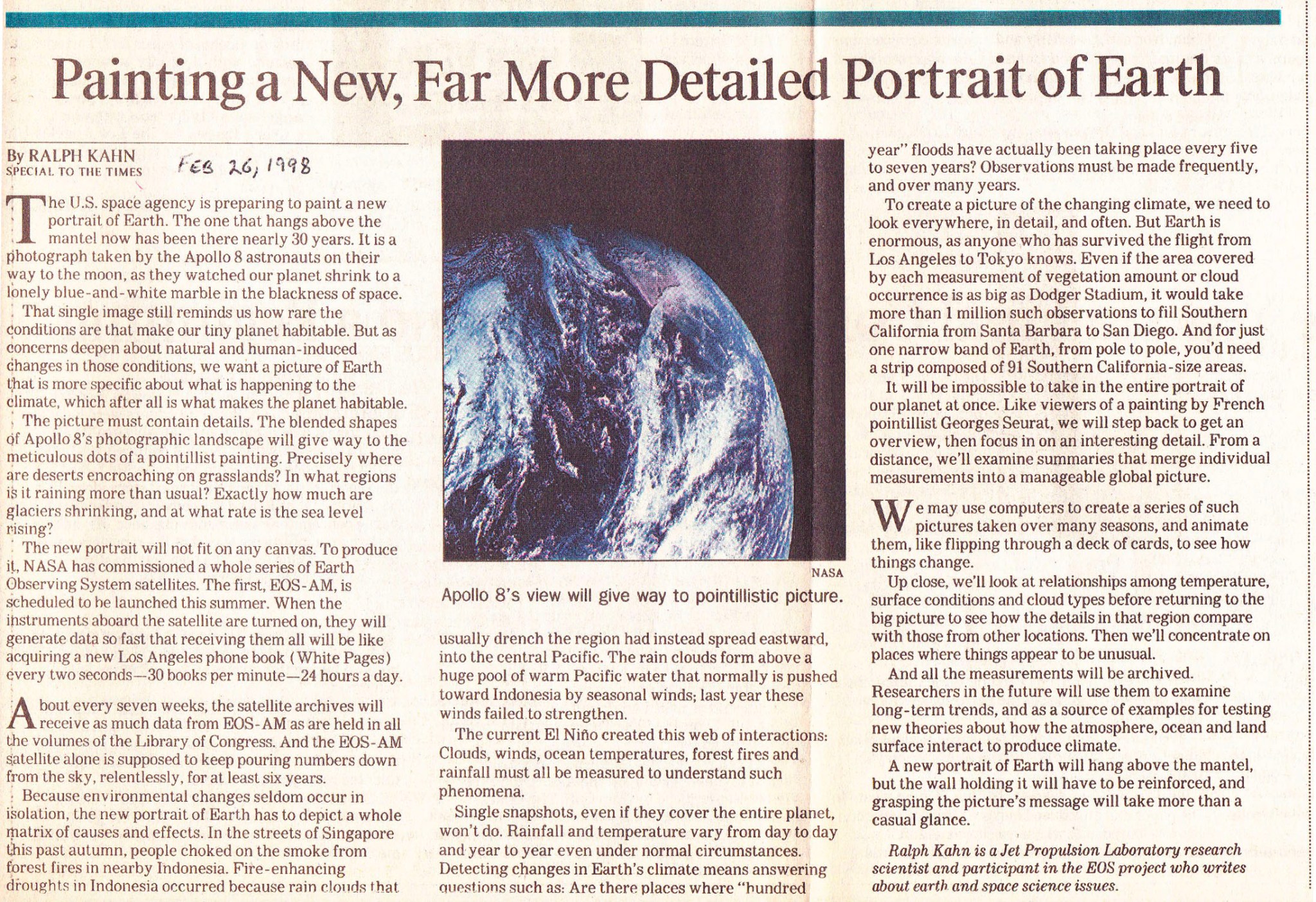 More than 20 years ago, NASA scientist Ralph Kahn authored a column for the Los Angeles Times anticipating the launch of a new satellite — and ultimately a whole fleet of satellites — that would study Earth.