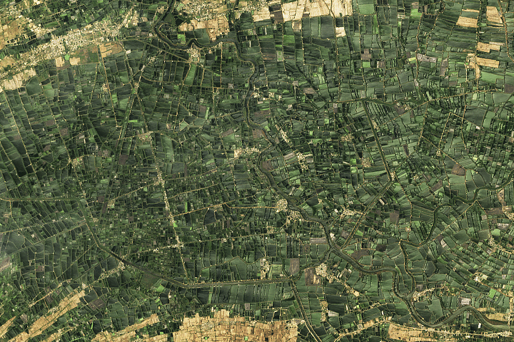 UPDATE — This puzzling image shows an abundance of agriculture in Andhra Pradesh. See the full image and story in our Image of the Day, published on July 17.