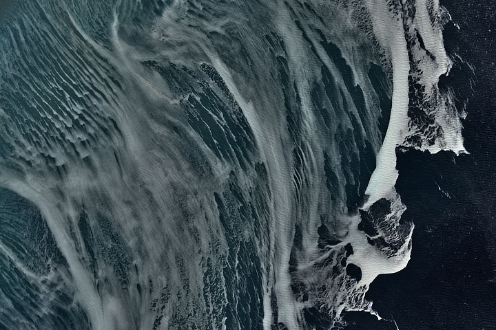 Update: The answer is sea ice in the Weddell Sea, off Antarctica’s Ronne Ice Shelf. Congratulations to Colin, who correctly identified the feature as sea ice, and to Katie Gerber who correctly identified the feature and location. Read more in this Image of the Day.