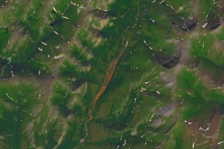 Update on January 23, 2023: This image shows Tukpahlearik Creek in northwest Alaska. Congratulations to Luis Martinez for being the first to correctly identify the feature and its location. Special mention to Steve, who provided a reason for the creek’s unusual color. Read more about the image in our Image of the Day story, which describes several hypotheses for the creek’s orange hue.
