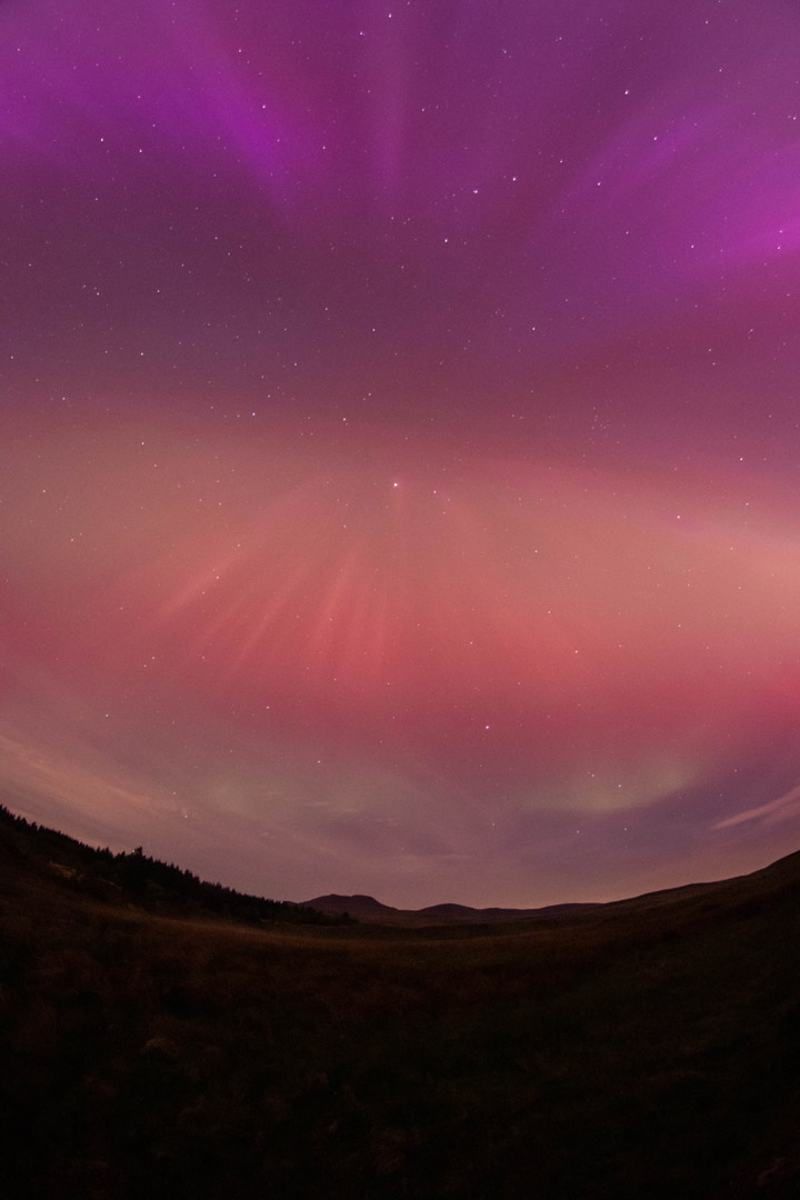 On May 11, 2024, the day-night band of VIIRS (Visible Infrared Imaging Radiometer Suite) on the Suomi NPP satellite spotted the aurora borealis over the United States during the strongest geomagnetic storm in over two decades. That same night, observers on the ground captured spectacular photographs of the dazzling light. The following photos represent just a handful of those shot by citizen scientists as part of NASA’s Aurorasaurus project, which tracks aurora sightings around the planet.