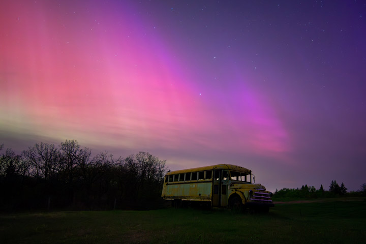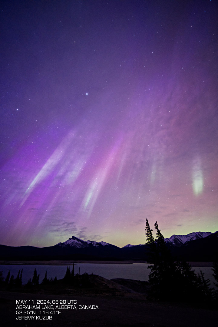 On May 11, 2024, the day-night band of VIIRS (Visible Infrared Imaging Radiometer Suite) on the Suomi NPP satellite spotted the aurora borealis over the United States during the strongest geomagnetic storm in over two decades. That same night, observers on the ground captured spectacular photographs of the dazzling light. The following photos represent just a handful of those shot by citizen scientists as part of NASA’s Aurorasaurus project, which tracks aurora sightings around the planet.