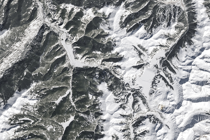 Update on 4/25: This Landsat image shows Camp Hale-Continental Divide National Monument in the winter. Congratulations to Mike and Charles for being the first readers to identify the location.