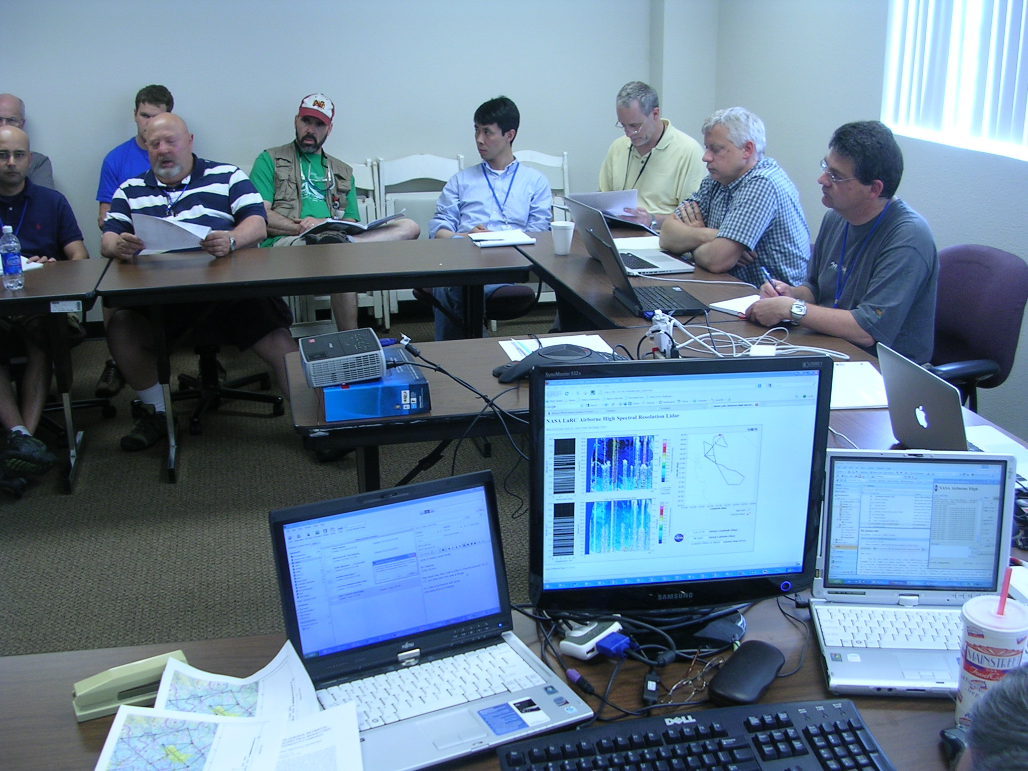 This is a day in the life of a flight planner. Planning a flight involves balancing all of these factors, changing and unpredictable weather and aerosol conditions, sometimes fickle aircraft and instrument systems, crew rest time, and competing science interests, to obtain the best set of measurements possible for future study. Flight planners have to have detailed knowledge of the discipline of atmospheric science, so that they can weigh the science objectives against each other and determine what produces the most results for the taxpayer dollars, which is why the flight planners here (Rahul Zaveri and Beat Schmid for the DOE G-1, Chris Hostetler and Rich Ferrare for the NASA B-200) have so many years of research experience behind them.