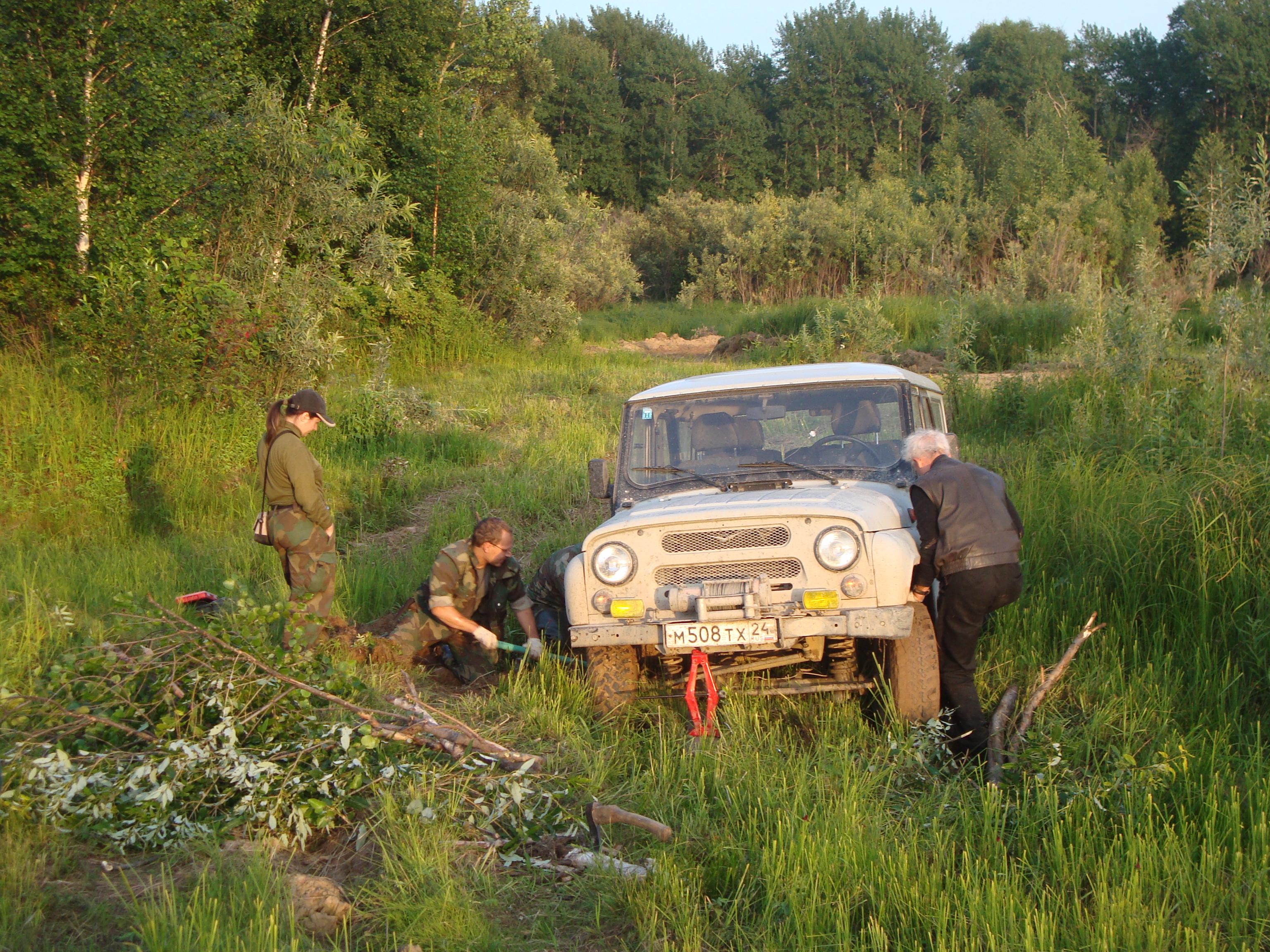 Pretty soon the crew from The Pill came carrying their hand-shovels to help dig us out. We dug near the tires, then laid down branches and brush under the tires for traction. Then we dug a bit more. It took awhile, and at some point, I heard Marsha mutter the slogan I’d read about before: “a UAZ will break down where no other car will go”. I get it, I get it – a UAZ will take you far beyond where it makes any sense to try to drive. And then you may regret it.