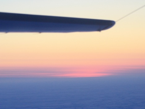 The sunrise as seen from about 1,500 feet over the frozen Arctic Ocean. Credit: LCDR Woods)