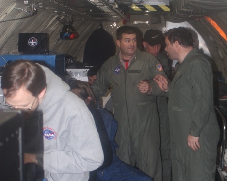 Ariborne Topographic Mapper (ATM) with Jim Yungel, ATM Program Manager (center) and Michael Studinger, project scientist for Operation IceBridge (right). Credit: LCDR Woods