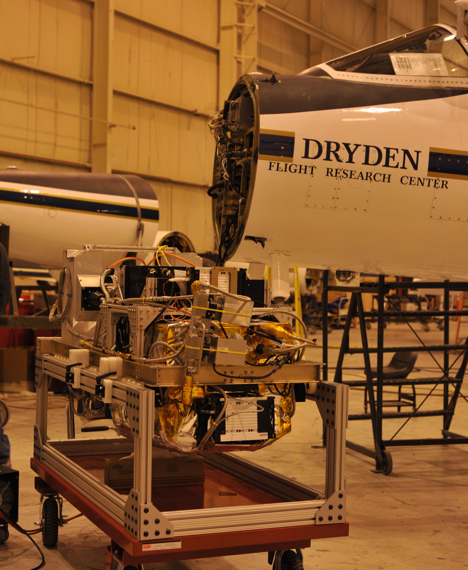 After just a day of hooking MABEL up to the aircraft and checking out her systems (image below), we flew the instrument on what we consider to be a ‘shakedown’ mission. We flew a route local to the Dryden Flight Research Center that is also used by Operation IceBridge. It allows us to ensure that MABEL, and a secondary instrument onboard the aircraft, are operating smoothly. This flight path also covers a lot of different types of terrain, such as Lake Meade, the Pacific Ocean, mountains, and deserts. These varying terrains allow us to assess MABEL’s performance. Additionally, because we are flying an established route for IceBridge, we have data with which to compare MABEL.