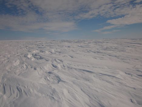 We were fortunate on this trip to generally have very good weather. On sunny days, the appearance of the subtle hills and valleys that cover this part of the ice sheet broke up the monotony, and the interplay of the low-angle afternoon sun on the snowdrifts created glittering sculptures of light and shadow that unfolded before us as we drove home.