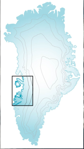 Map of Greenland, with Swiss Camp region indicated by the box on the left.