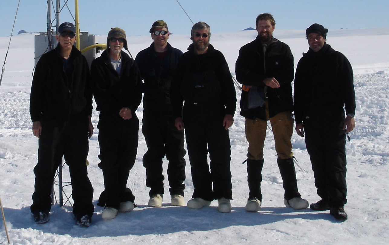 Picture of the PIG project members taken in November 2009 following successful drilling test program at Windless Bight, near McMurdo Station. From left to right: Bob Bindschadler, Jim Stockel, Martin Truffer, Tim Stanton, Dale Pomraning, Alberto Behar.