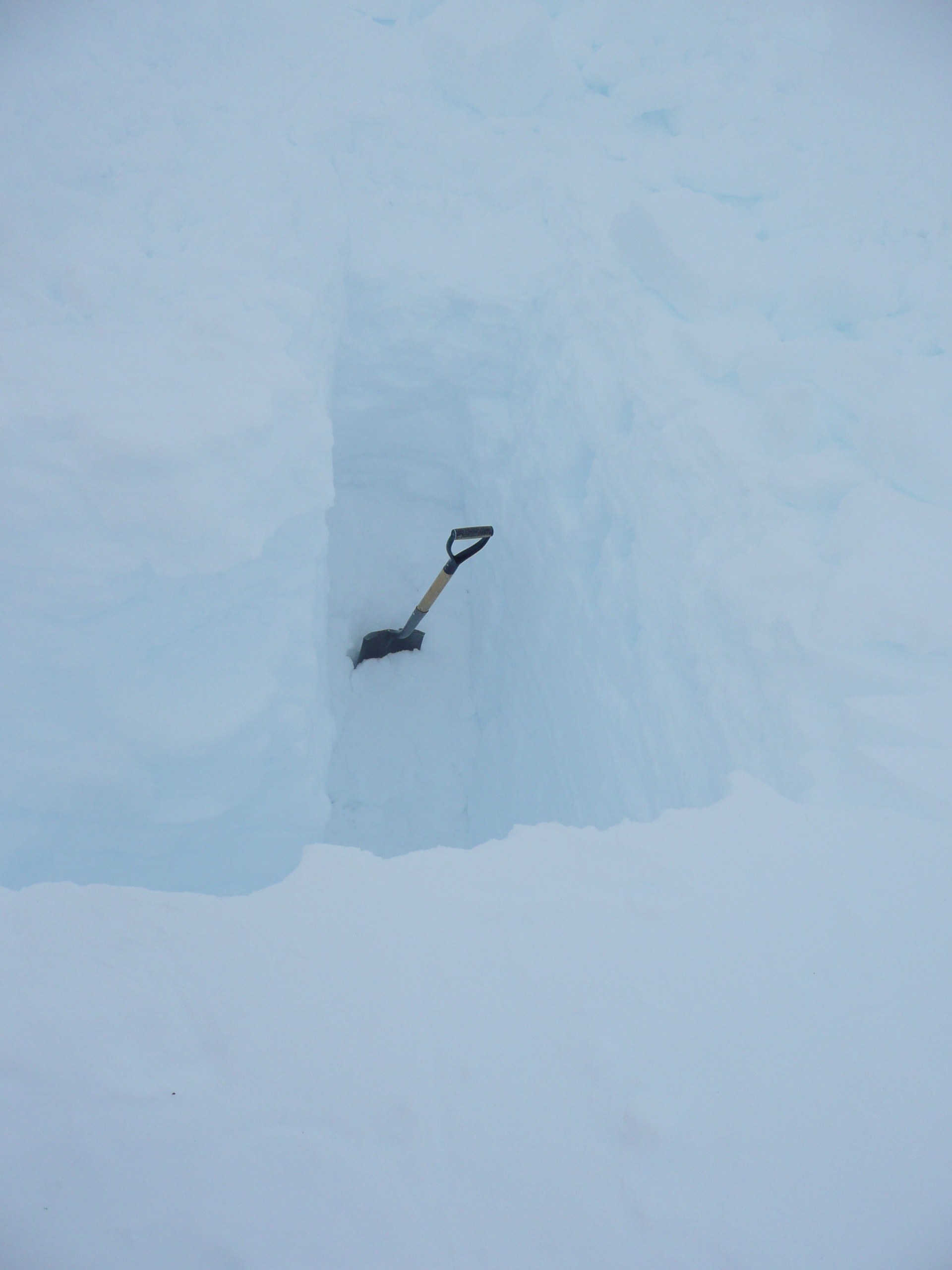 At about a third of the way down the picture the snow becomes firn, which is snow that had persisted through at least one melt season. We cannot tell from the snow pit exactly how old the firn in the pit is (we need the isotopes for that), but we know that there are at least three years of records in the pit, so the firn at the bottom could be from 2009.