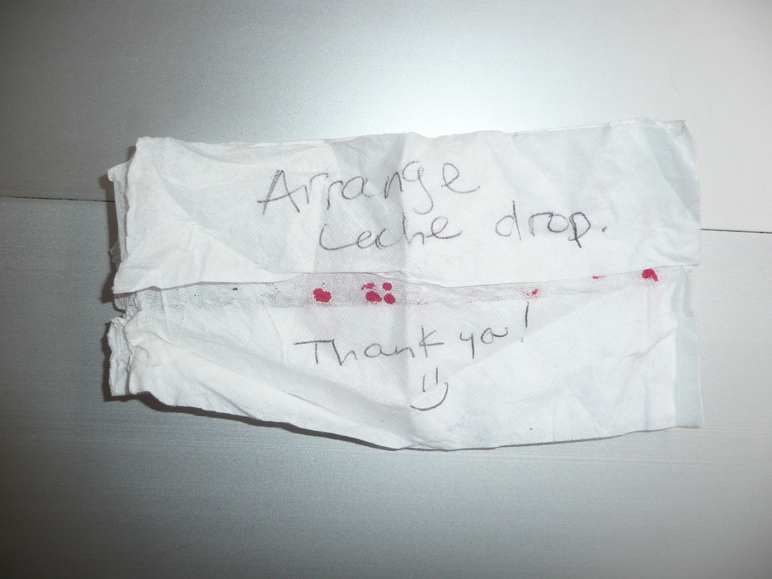 Michelle gave me a to-do list written on a napkin as she left for the traverse to arrange the caches. It is now checked off.