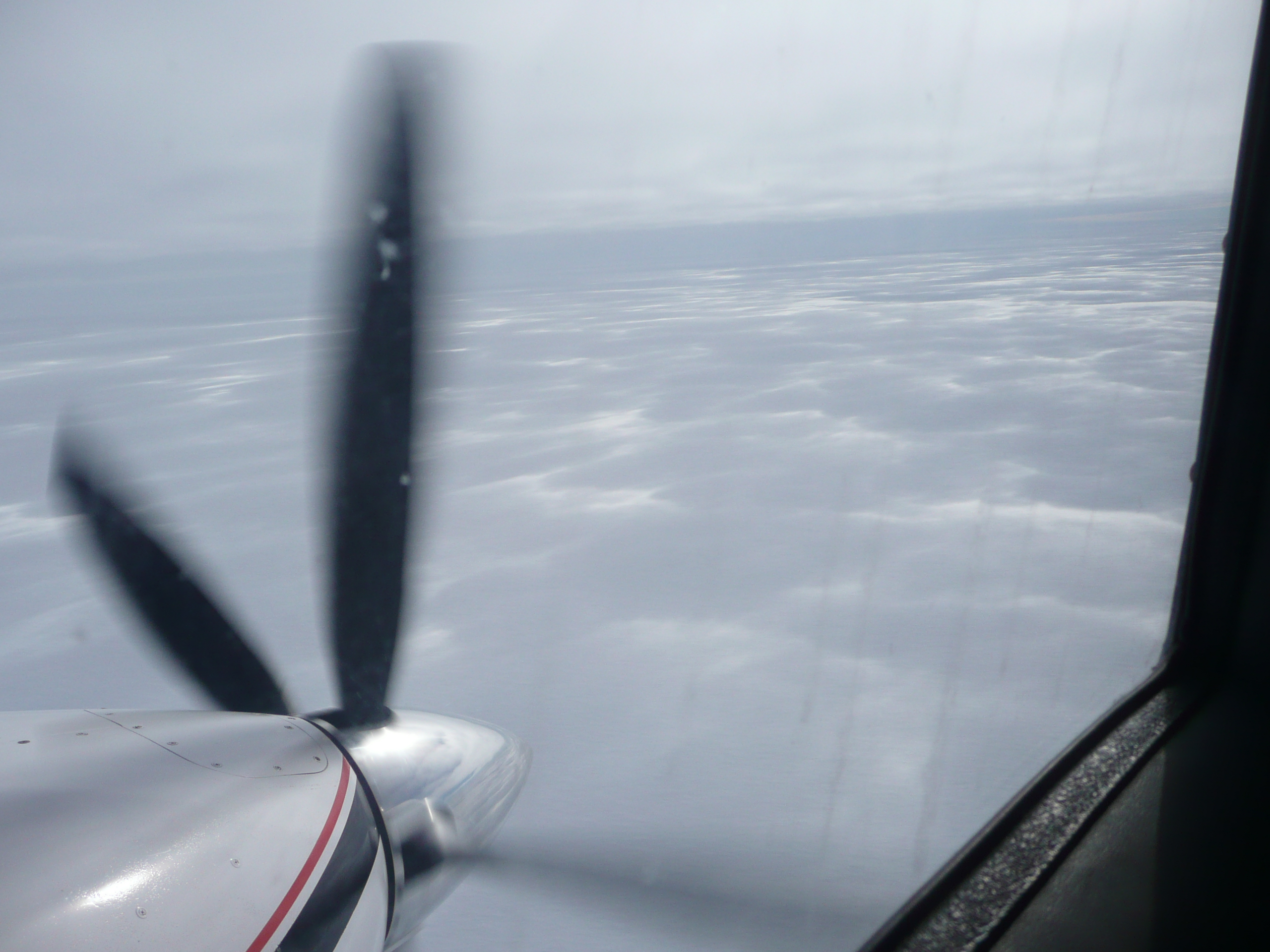 The ice sheet surface out the window of the Bassler. The light is reflecting off of the sastrugi.