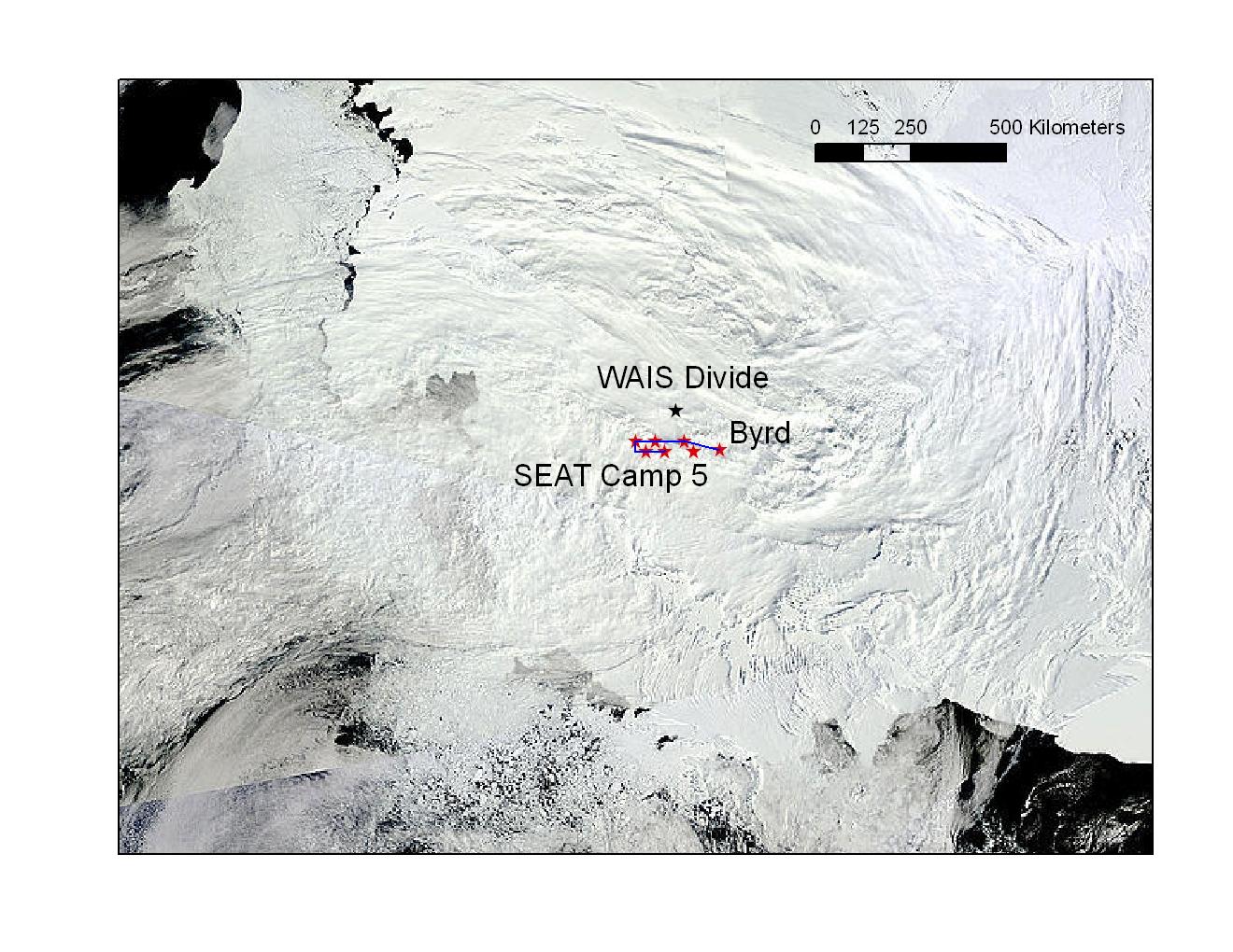 The traverse team got hit with their first storm last night. Everyone is safe and well. Here is the MODIS satellite image over Antarctica from Dec 21, 2011 showing the storm covering most of West Antarctica. The team experienced 35 to 40 knot winds with blowing snow.