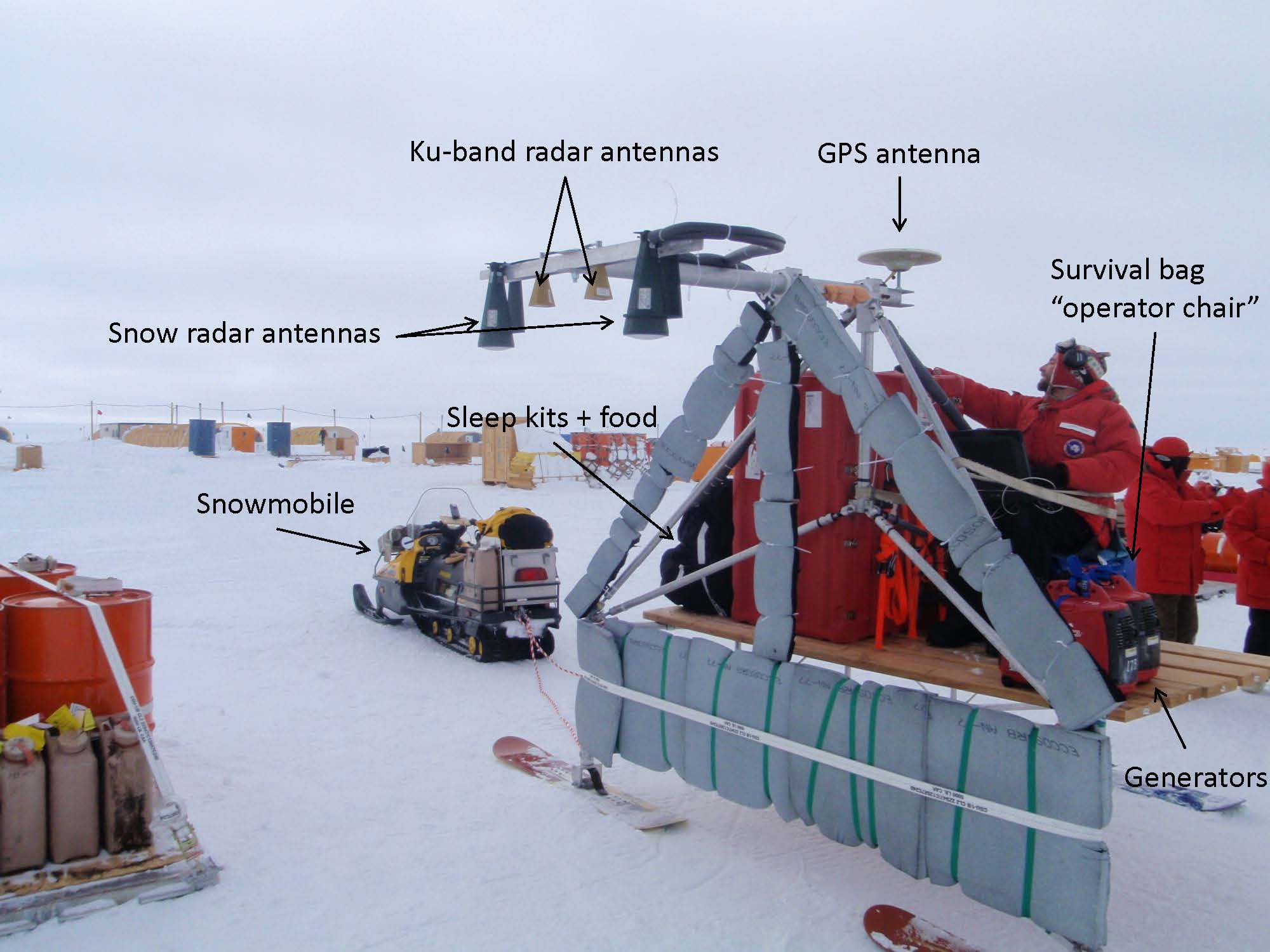 Here is a picture showing the two radars that operated simultaneously on the sled:
