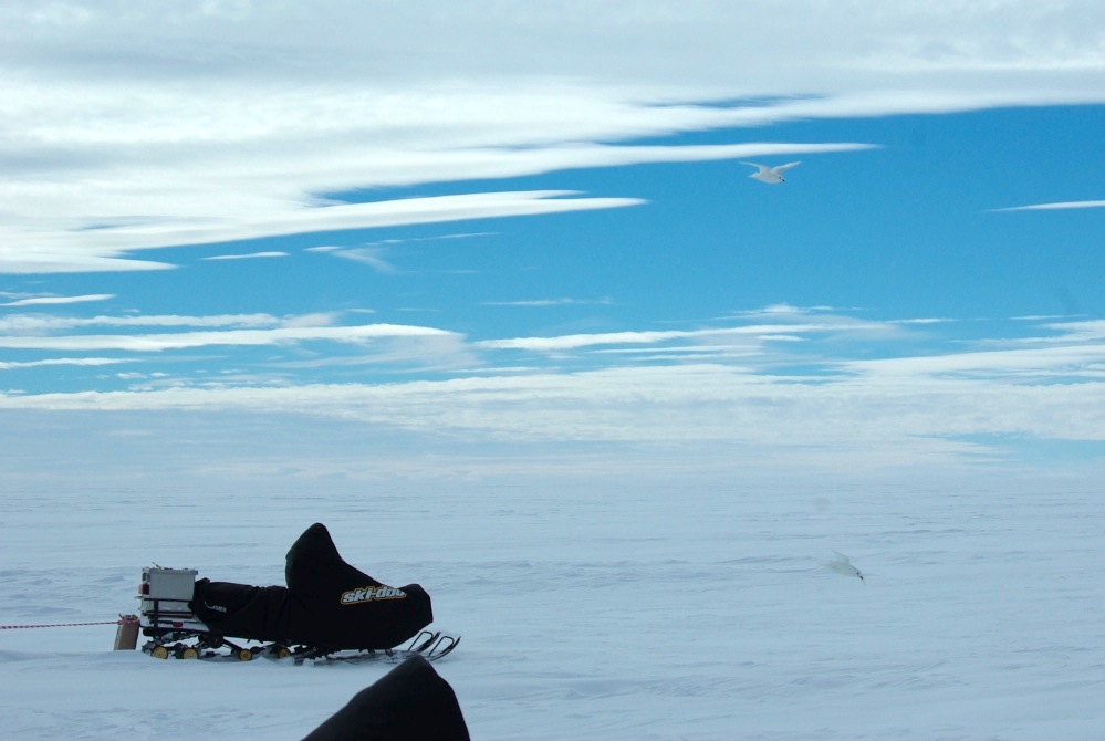 The birds visited us when we were at camp 5,430 km (265 mi) inland. I was surprised to see them so far away from the coast and once I was back at McMurdo, I looked for a bird specialist on base and found Dr. David Ainley, who gave me some info about the birds that I want to share with you.