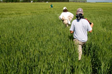 Wheat had matured quite a bit since the beginning of the campaign. Here Brian, Hida (U. Guelph), and Tracy were carrying plant samples for further analysis at the ROC.