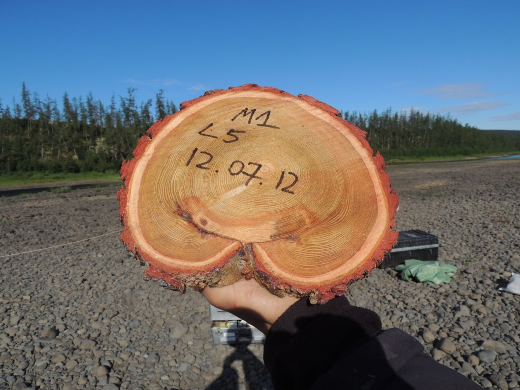 The forests in this region have burned in the past, although no active fires have been seen. It is a very rich area for collecting fire return data. Here is a sample collected by Slava and Sergei on July 12. A fire scar can clearly be seen. The tree has made an effort to heal over the fire scar. These samples are carefully examined in the lab not only for fire scars, but for tree age and growth patterns.
