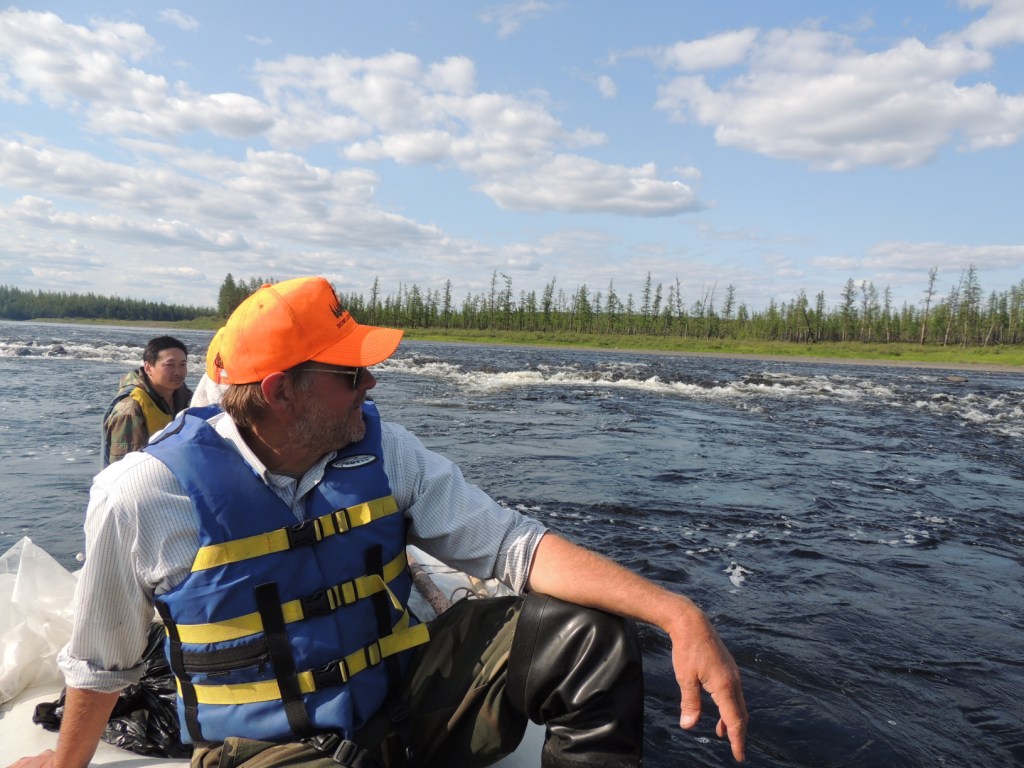 Everyone is in a good mood.  Ross and I were pleased with our clean clothes.  Gouqing travels fairly quietly, but smiles and says he is doing well.  The two young Russians, Sergei and Pasha, manned the paddles today – one in the lead boat with Slava and one in the back boat.  Ross and I also kept checking the GPS to make sure we always knew where we were.