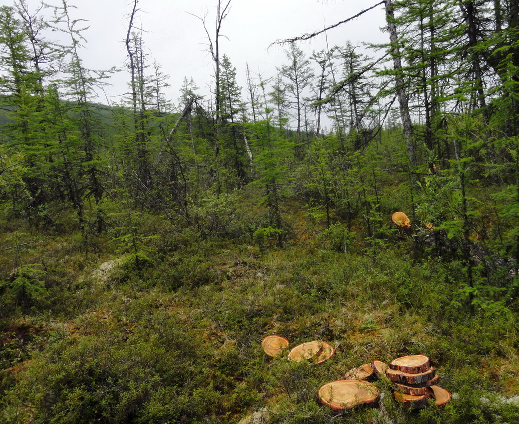 Whether viewed from helicopter, boat or on foot, huge areas of forest show the effects of fires. Some fires are recent, but most burned a couple of decades in the past. Because of how remote those forests are, and given the absence of people, most of these fires were likely caused by lightning. In many places the larch forest regrows, in some places it does not. We thought we understood how larch forests regenerated, but this change we’ve seen – some stands do not appear to be regenerating – certainly calls for study.