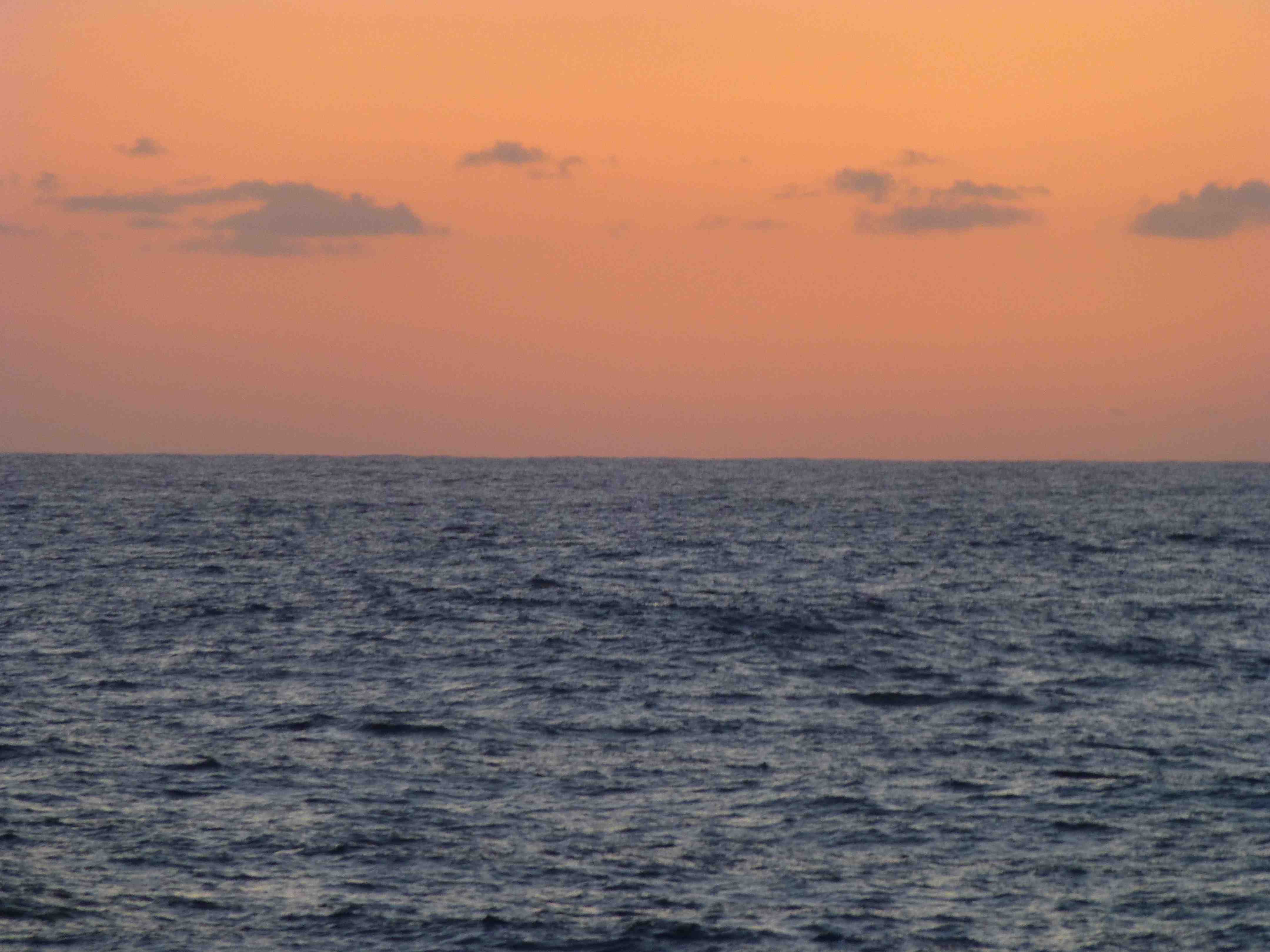 From the shipboard perspective, all we really see of the sea is the surface. Of course we can see into the water a short way, right close to the ship, but not very far. The horizon is 360 degrees and the great dome of sky seems endless.
