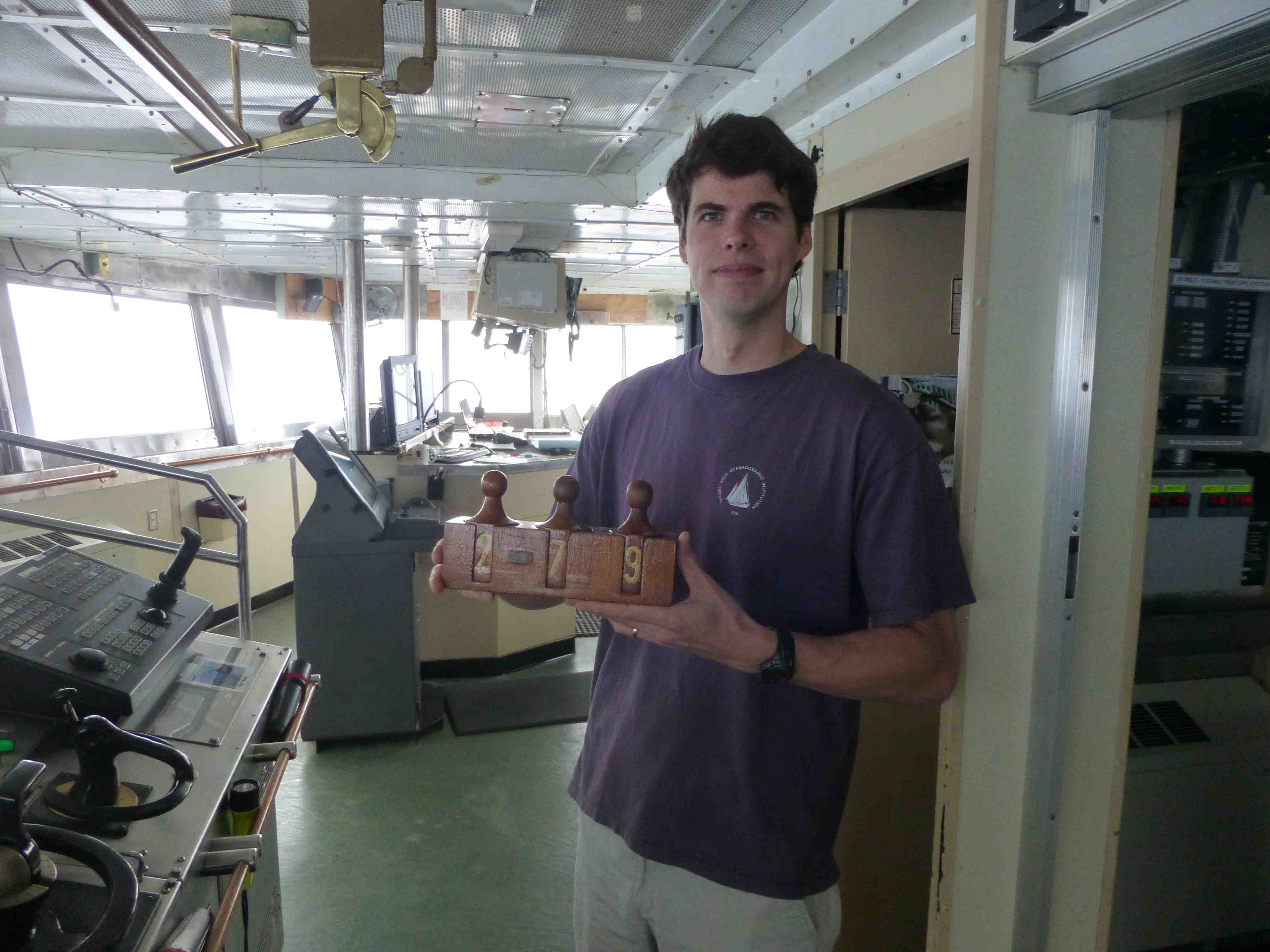 Captain Adam Seamans has been a Master of Knorr since 2008. He started with Whoods Hole Oceanographic Institution (WHOI) as an Able Seaman in 2000, where one of his first duties was to clean a science cabin after a head overflowed. My, how times have changed! Now he commands the 22-member crew of Knorr and navigates her to all corners of the globe. Maybe he still has to deal with a lot of crumby jobs, but they are mostly of the cleaner variety!