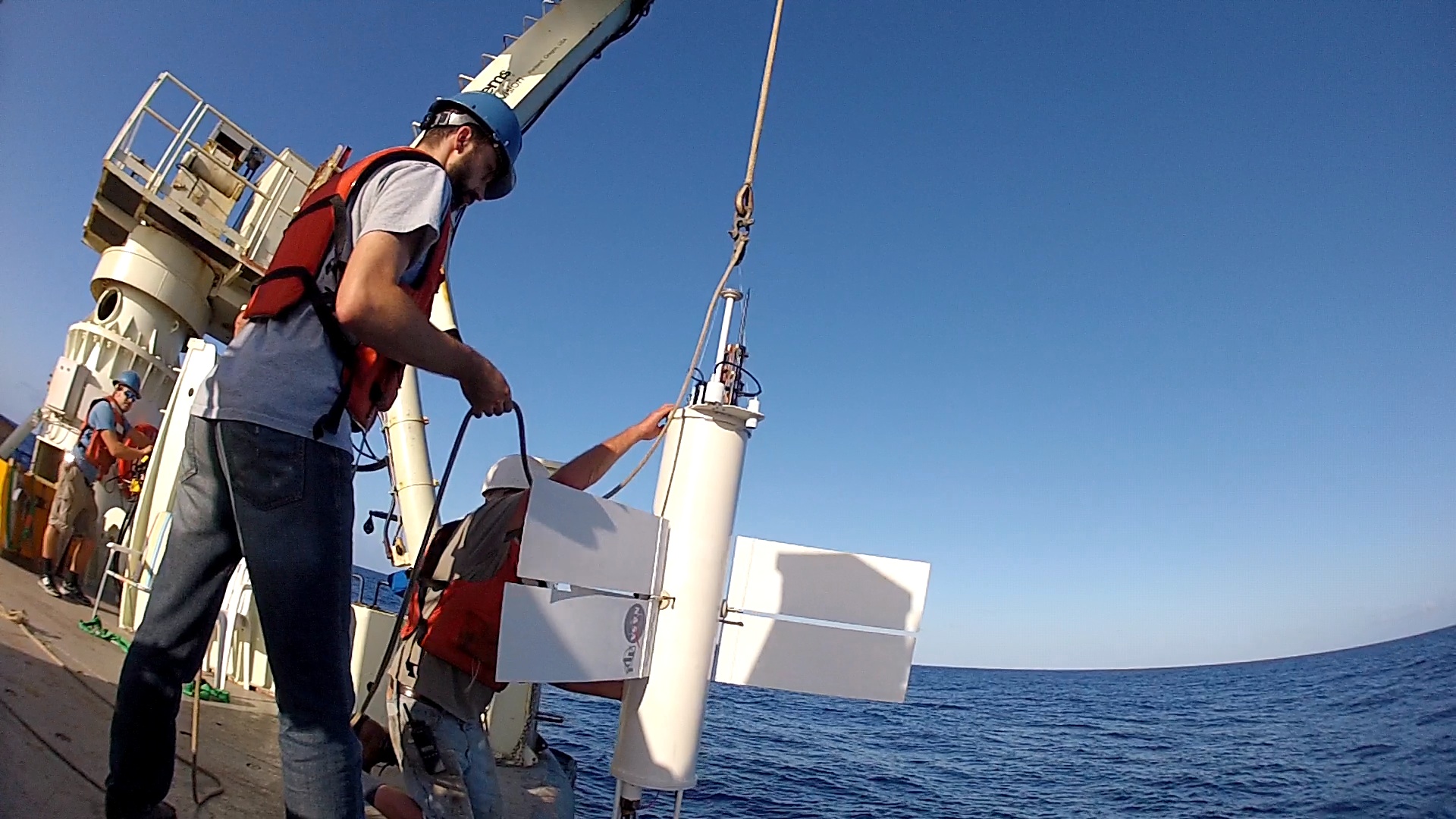 Some of the details are fascinating. Twenty-six Argo-type profiling floats are being deployed over the course of the SPURS expedition and will remain in operation for four to five years. These floats will join the network of over 3,500 Argo floats currently monitoring the world’s oceans. Their additional sensor suites include the Surface Temperature and Salinity (STS) and Passive Acoustic Listener (PAL) packages. To ensure float longevity, typical Argo floats quit collecting data about 20 feet below the sea surface. The STS sensor, however, makes high vertical resolution (about 4 inches, or 10 centimeters) measurements of temperature and salinity from 100 ft depth all the way to the sea surface. The PAL sensor uses a hydrophone to acoustically measure wind speed and rainfall while the float is drifting between vertical profiles.