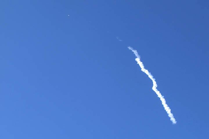The atmosphere was electric at Providence Landing Park in Lompoc, California as the first stage of an Atlas 5 rocket ignited in the distance on February 11, 2013.