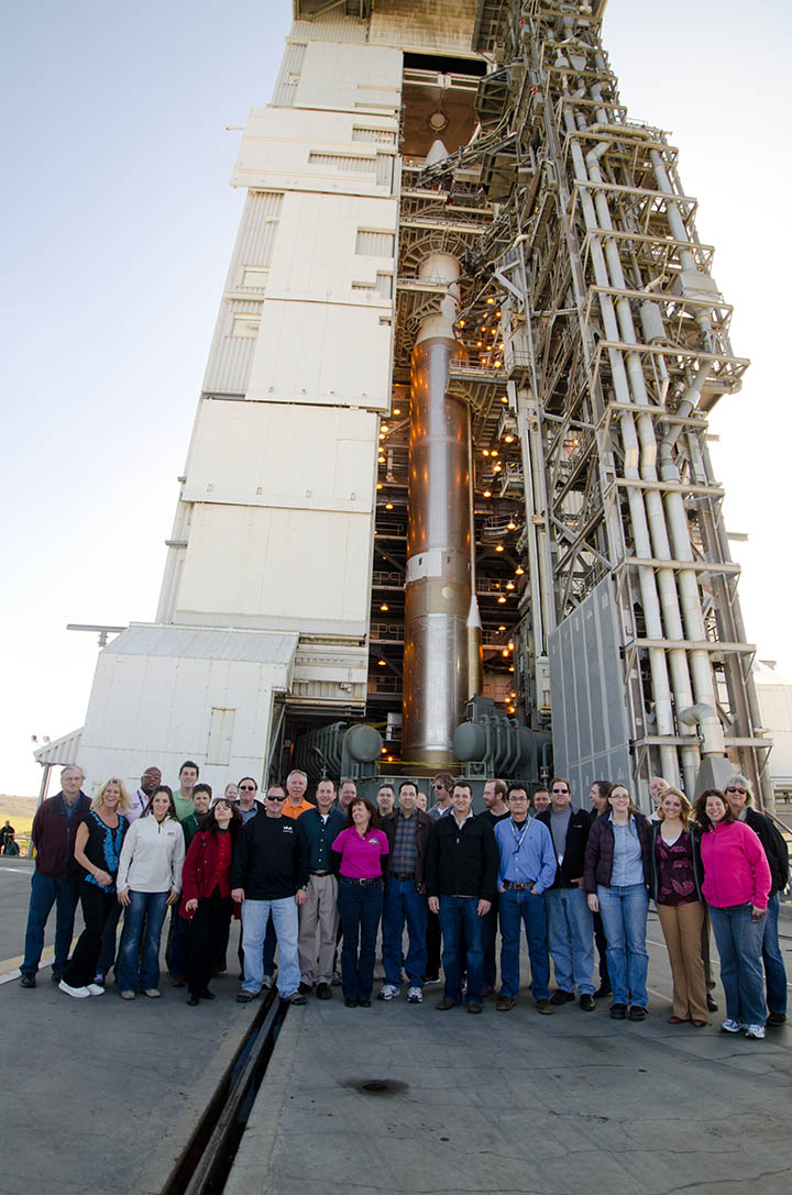 Confused by Ken’s chart, I decided that taking a break from the newsroom and getting a group picture with the team in front of the rocket would be a good diversion (see photo below).