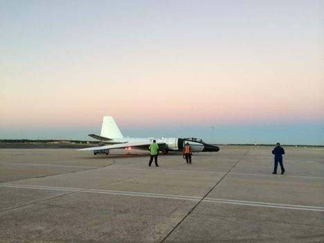 On Friday morning, at 7:40 AM EDT, our WB-57 took off for a third, and final flight over Hurricane Gonzalo. At the time of our flight, Gonzalo was a Category 3 storm located south of Bermuda. While we were flying Gonzalo, one of the NOAA P-3s was also investigating Gonzalo. The data the P-3 collected will be particularly useful for the WB-57 instrument teams to validate our results. For example, HIRad is very similar to the Stepped Frequency Microwave Radiometer (SFMR) onboard the NOAA P-3. We can use SFMR data that is collocated with HIRad data to validate our results over the coming weeks.