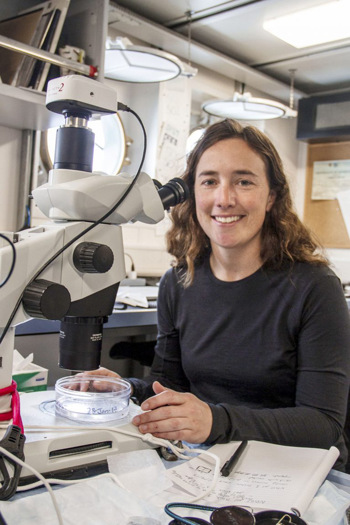 Colleen Durkin, Oceanographer, is studying particle size and distribution in order to relate it to the carbon cycle and the capacity of the ocean to store carbon. SOI/ Mónika Naranjo González