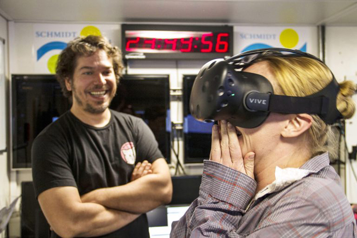 Not only is Ben in charge of designing an efficient way to deal with all of the information yielded by the holographic camera, but he is also the mastermind behind the software that allows scientists to step into the holograms and interact with the particles in a Virtual Reality environment. This has been the first time Ben has ever been at sea. He assists researchers in the deployment and recovery of scientific instrumentation, and more importantly, he is gaining a deeper understanding of what they are looking for, becoming familiar with their thought process and expectations. All of this experience is vital for Ben to improve the software so scientists can have faster access to the information they need to extract from each holographic image.