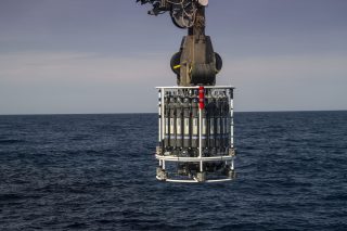Here, on R/V Falkor we are combining traditional methods of phytoplankton analysis – such as preservation of water for later, onshore analysis under a microscope – with the new, recently developed methods of onboard image analyses. Discrete samples are taken with the Niskin bottles at the specified depth. The sampling depth is chosen according to the physical, chemical and biological characteristics of the water column that are measured by the instruments mounted on the rosette, and controlled from the science control room. Once the rosette is on deck, the samples are taken from the Niskin bottles and prepared to be either stored until they return to land, or analyzed on board. The great advantage of the onboard image analysis is that it lends an instantaneous snapshot of the phytoplankton composition and abundance, which allows you to adapt your sampling strategy and use the time spent on the ship in a better, more productive way.