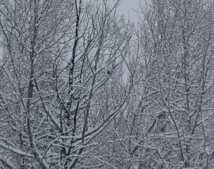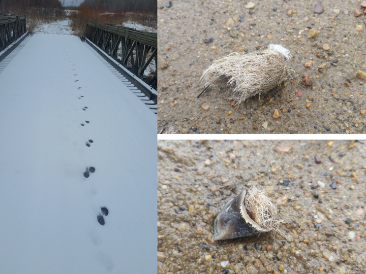 A walk in the snow revealed that I’m not the only one who uses the trails in the park. I found dog-like footprints in the snow and scat nearby, both of which were sure signs of a coyote. Can you guess what this coyote was eating?