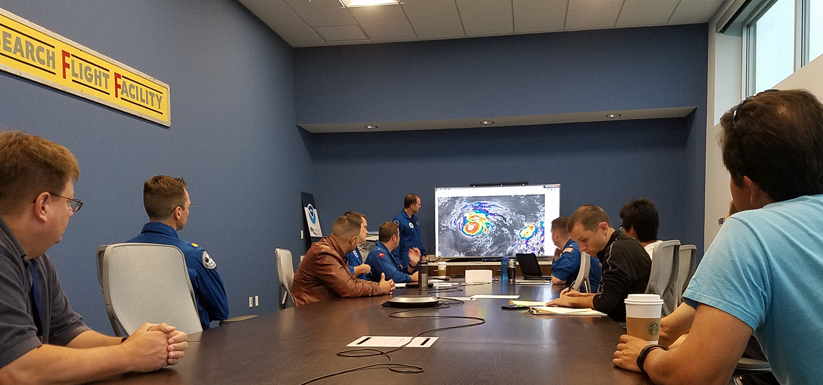 The flight out to Harvey started ominously, with a detailed safety briefing before take-off for first timers like myself about things like the difference between what to do if we have to ditch in the ocean with more than 3 minutes of warning vs. less. The hurricane hunters have been flying for decades and have never had to ditch, so this gives you some idea of how thorough and detail oriented the crew is. After the safety briefing, the flight director mustered the full crew to discuss some last minute mission logistics and concluded with this: “Harvey is currently a Cat 2 hurricane and is expected to undergo RI (rapid intensification) while we are in the air, then head for landfall tonight near a major population center. Days like today are why we are here. Now let’s go do our jobs.” We were “wheels up” 15 minutes later at 10:00 EDT.
