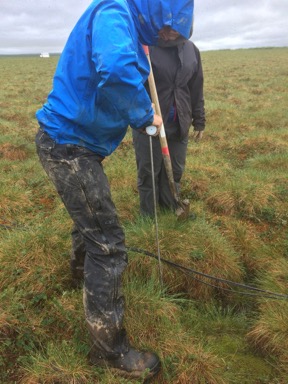 By late afternoon we had attached the datalogger box to the EC tower and were laying out the 18 soil moisture sensors of various lengths. Unravelling and walking out the 10 to 90 m cables was more challenging than anticipated. With the equipment box attached to the tower and sensors ready for installation we made our way to the power shed to charge our tools and equipment. Hungry and ready for bed, we made the rainy walk (the first of many) back to camp and tucked into our sleeping bags for the night.