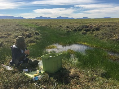 Over the course of my two weeks with the NASA ABoVE 2017 Field Campaign, I traversed the mucky tundra, dug holes through permafrost for the installation of soil moisture sensors, measured permafrost active layer and water table depths, and collected stream water samples around the Ivotuk airfield. This experience has improved my understanding of the Arctic tundra’s high spatial variability and the challenges faced when modeling its ecosystem processes at larger scales. The new measurements from the soil moisture sensor arrays installed in Ivotuk and Atqasuk this summer will help ecological modelers to quantify these small-scale differences for use in future biophysical land models.