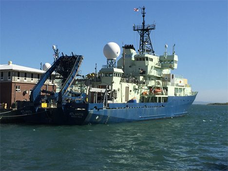 We are perfectly set up to tackle the question. Within a 200-foot radius cutting through North Atlantic waters, we have our sampling gear and instrumentation, well-equipped laboratories, state rooms, a galley and most importantly, interdisciplinary colleagues with whom to share ideas, debate and hone experimental designs. While life at our home institutions provides us with similar frameworks to investigate the questions we view meaningful, many of us often reflect on a busy week wondering what exactly we accomplished. That viewpoint is largely consequence of schedules being stretched thin by teaching (or taking classes), going to scheduled meetings, to impromptu meetings, and to meetings about those meetings, and then of course, writing emails, many of which are to schedule more meetings. At sea, each of us is allotted 100mb of internet connection per day (about 10 minutes of access on a home network), which is amazing because 1) we can access the internet in one of the most remote places in the world and 2) internet activity is short, to the point, and without frivolous lingering on social media. It is nice to be able to communicate with family and friends at home, but the limited access to the internet means that the majority of our energy is spent on research activities.