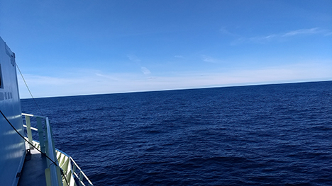 There is something about standing on and ocean-going ship. Sure footed for the moment. Gaze cast on an endless horizon of deep blue water against a pale blue cloud feathered sky.  That gives me full focus on the enormity of our planetary home and life support system.  All life that we know about is here. Full stop…