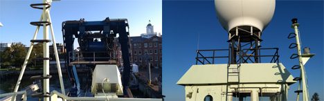 In its basic form this consisted of tying opposite ends of a string to a helium filled balloon and an electronic measuring instrument and hurling it at the sky.  The electronic measuring instrument radios back to the ship what it measures for temperature, humidity and pressure along with its GPS location.