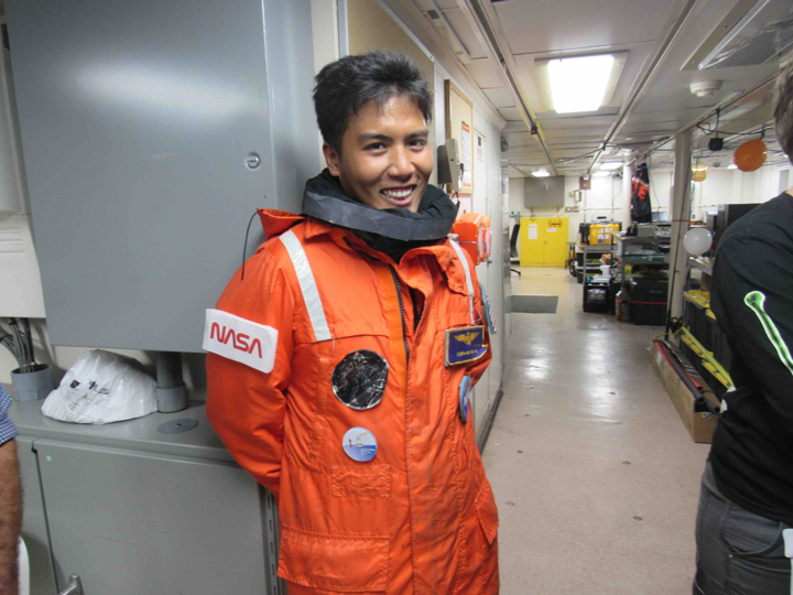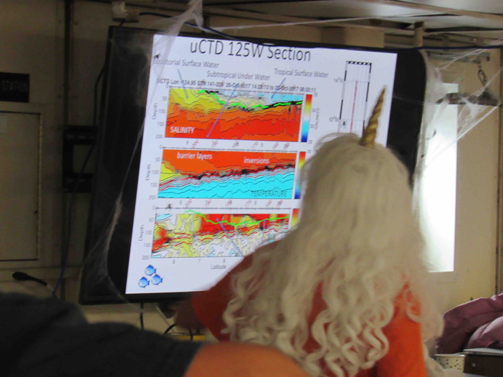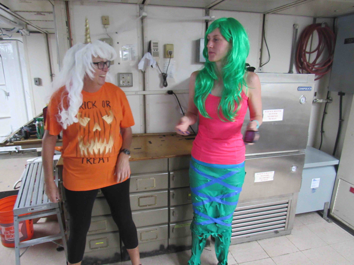 We had wonderful laughs and a few minutes of fun on Halloween. Costumes were called for while attending the daily science briefing. Photos throughout this blog post capture the moment much better than my words.