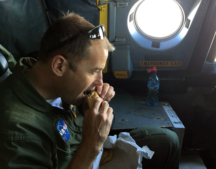 In the nine-plus hours it takes to fly from Argentina to Antarctica, collect data over the continent and fly back again, people on board are bound to get hungry. There is a microwave on board, as well as some snacks and hot drinks. But there are no flight attendants, and there are no meal carts. NASA’s P-3 is equipped primarily for science.
