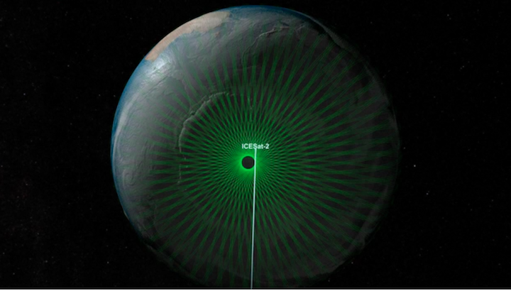 ICESat-2 is a NASA satellite, scheduled for launch in 2018, that will measure the height of ice sheets, glaciers, and sea ice in unprecedented detail. Designed and built at NASA’s Goddard Space Flight Center, it will carry a laser instrument called the Advanced Topographic Laser Altimetry System (ATLAS). ATLAS will send out small pulses of laser light, and precisely time how long the light takes to travel from the instrument, down to the earth, and back. These measurements, along with the position of ICESat-2 in its orbit, and the direction ATLAS was pointing, allow us to determine the height of Earth’s surface wherever ICESat-2 goes.