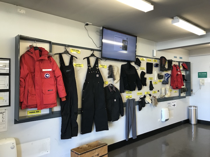 An array of hats, jackets, and gloves are available at the Clothing Distribution Center in Christchurch NZ to keep us warm while we’re down “on the ice.”