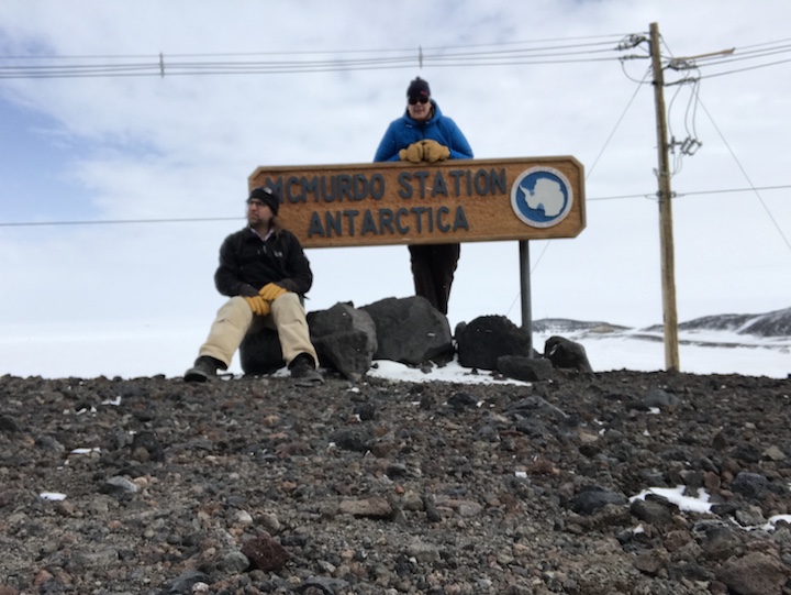 Tom and Kelly at the McMurdo Station sign (Photo: Brunt)